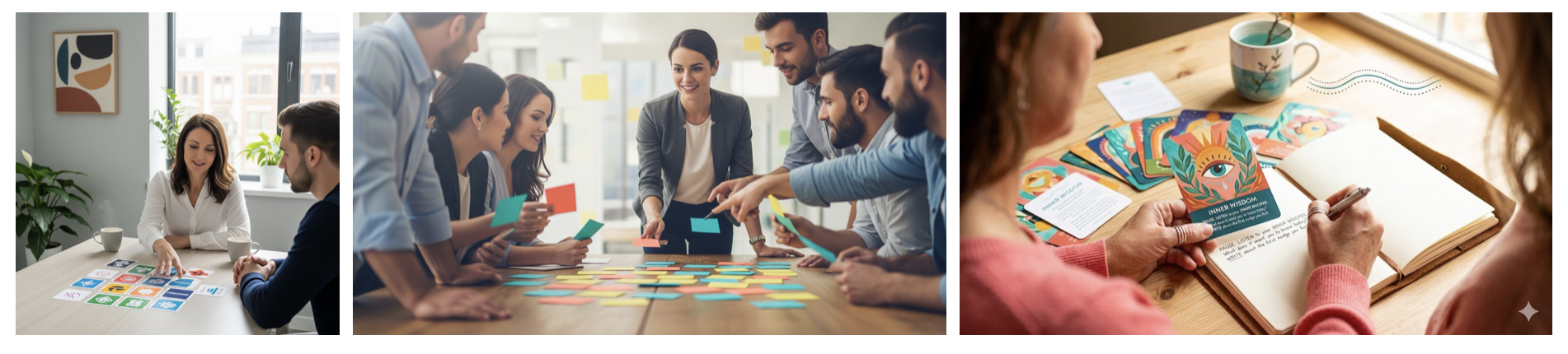 You’ll have: A working prototype, Clear content decisions, Confidence in your card deck process and a practical plan for bringing your deck into the world.